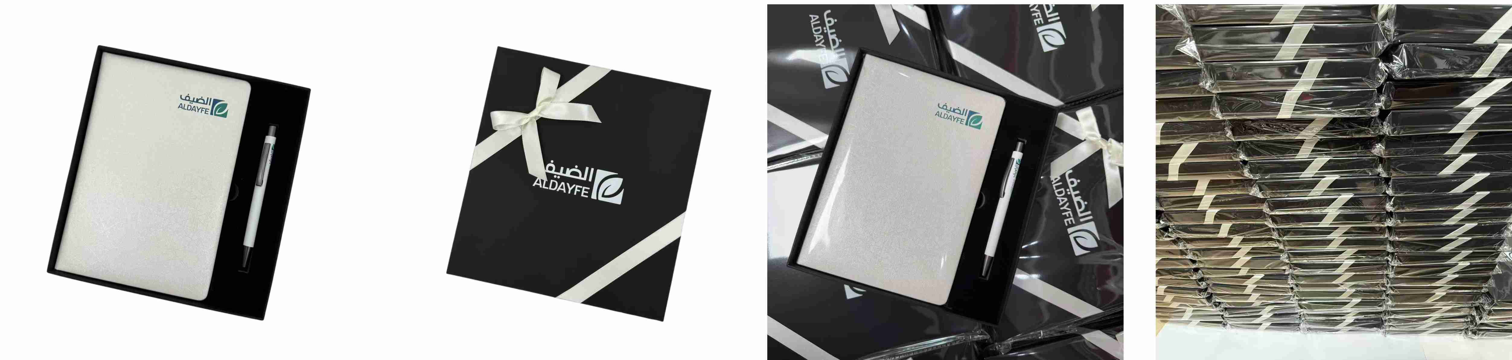 Xem xét sự chú ý của các khách hàng có giá trị của chúng tôi đối với các chi tiết, chúng tôi đã ra mắt hộp quà tặng kiểu Ả Rập tinh tế này với một cây cung ruy băng trắng và một yếu tố khu vực Saudi độc đáo. Nó kết hợp vẻ đẹp và sự chuyên nghiệp. "Aldayfe" được in trên hộp giấy nghệ thuật màu đen chất lượng cao với công nghệ UV, cho thấy kết cấu sang trọng. Logo "Aldayfe" bắt mắt làm cho nó trở thành một lựa chọn quà tặng lý tưởng có thể để lại ấn tượng sâu sắc với mọi người. Nó cũng được trang bị một cây bút: logo màu được in trên bút, tạo thành một loạt hoàn chỉnh. Nếu bạn đang tìm kiếm một món quà quý giá cho các đồng nghiệp hoặc khách hàng, bộ quà tặng này là một lựa chọn tuyệt vời cho các hoạt động tiếp thị.