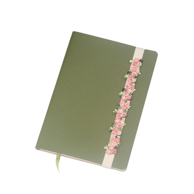 Cuốn sổ ghi chép thêu này có da có kết cấu bằng litchi trong các màu cơ bản đa năng, tinh thần, xanh lá cây, nâu, xanh dương và hồng hoàn hảo để phù hợp với các tâm trạng và dịp khác nhau. Dây đeo đàn hồi màu be trưng bày một thiết kế khéo léo với những bông hoa màu hồng thêu tinh tế, như thể nhét một góc của một khu vườn vào cuốn sổ ghi chép xuất hiện sự quyến rũ nghệ thuật và nhân vật độc đáo.