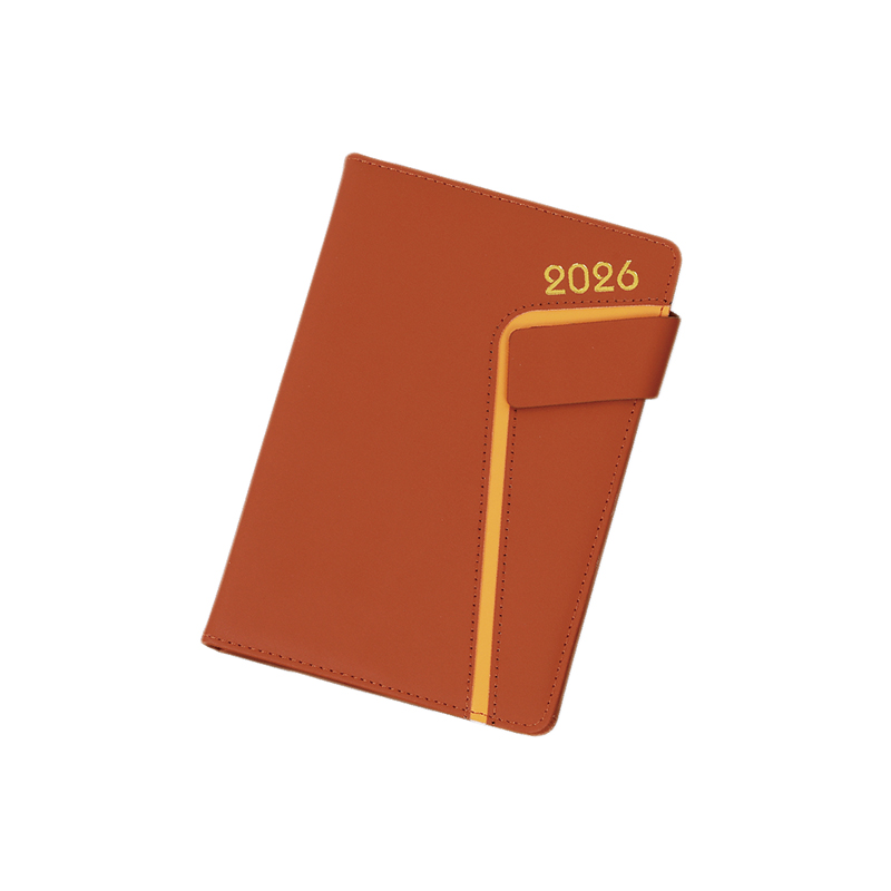 Cuốn sách chương trình nghị sự của Đức này có bìa da giả PU tinh tế, logo 2026 được đóng dấu vàng và một dòng màu cam sáng ở bên cạnh. Nó được kết hợp với một khóa từ tính xiên vuông. Toàn bộ bìa được bọc bằng một tấm ván màu xám lót bọt biển, mềm mại và thoải mái khi chạm vào.